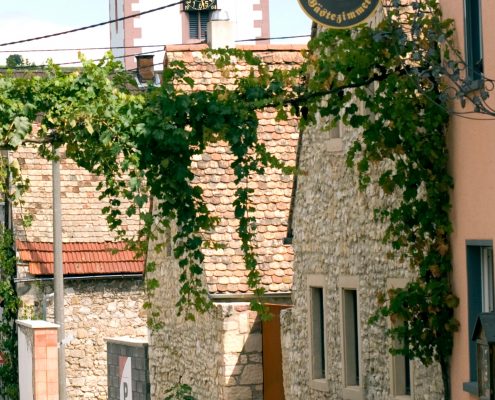 Unser Weingut liegt im alten Ortskern von Wachenheim, nahe der heute evangelischen Kirche aus dem 14. Jahrhundert mit Ihrem sehenswerten Marienaltar.